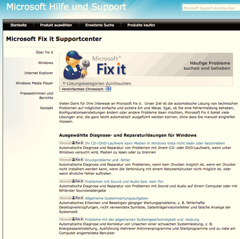 Weitere Informationen sowie einen Link zum Download der Beta-Version gibt es unter http://fixitcenter.support.microsoft.com/Portal.