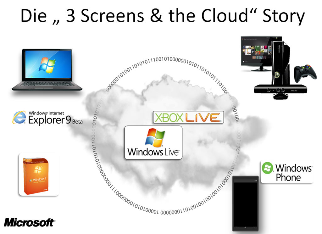 Die 3-Bildschirm-Strategie. Was ein wenig nach einem chinesischen Großprojekt a´la "3-Schluchten-Staudamm” klingt, ist im sperrigen Deutsch das Dach der Microsoft Consumer “3 screens” Strategie. Dabei geht es im wesentlichen darum:
