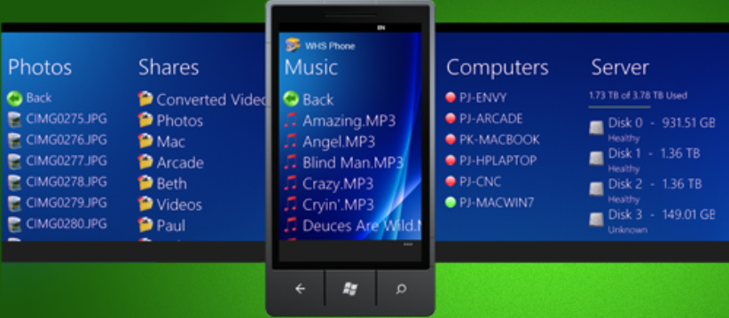 Daneben gibt es immer mehr Windows Phone Apps, die das Handy mit PC und sogar mit dem Server verbinden, wie es beispielsweise WHS Phone für den Windows Home Server macht.