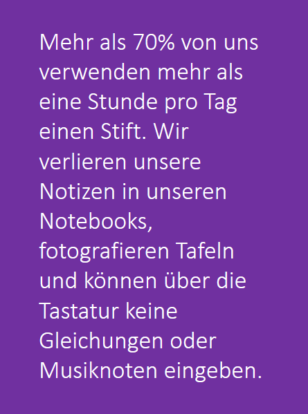 In einer Welt, in der jährlich Milliarden von Post-It Zettel verkauft werden und über 70% der Menschen mehr als eine Stunde am Tag ein analoges Schreibgerät verwenden ist es eigentlich auch naheliegend, die handschriftliche Notiz nun auch vollständig in das digitale Leben zu übertragen. Dies nicht zuletzt aus Produktivitätsgründen und als weiteres gutes Beispiel für eine Neu-Definition von Produktivität entlang der vielbeschworenen Digitalisierung der Welt.