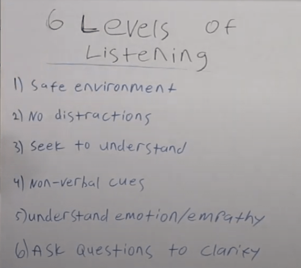- Die erste Stufe des Zuhörens besteht darin, eine sichere Umgebung zu schaffen, in der die Menschen das Gefühl haben, mit Ihnen sprechen zu können.